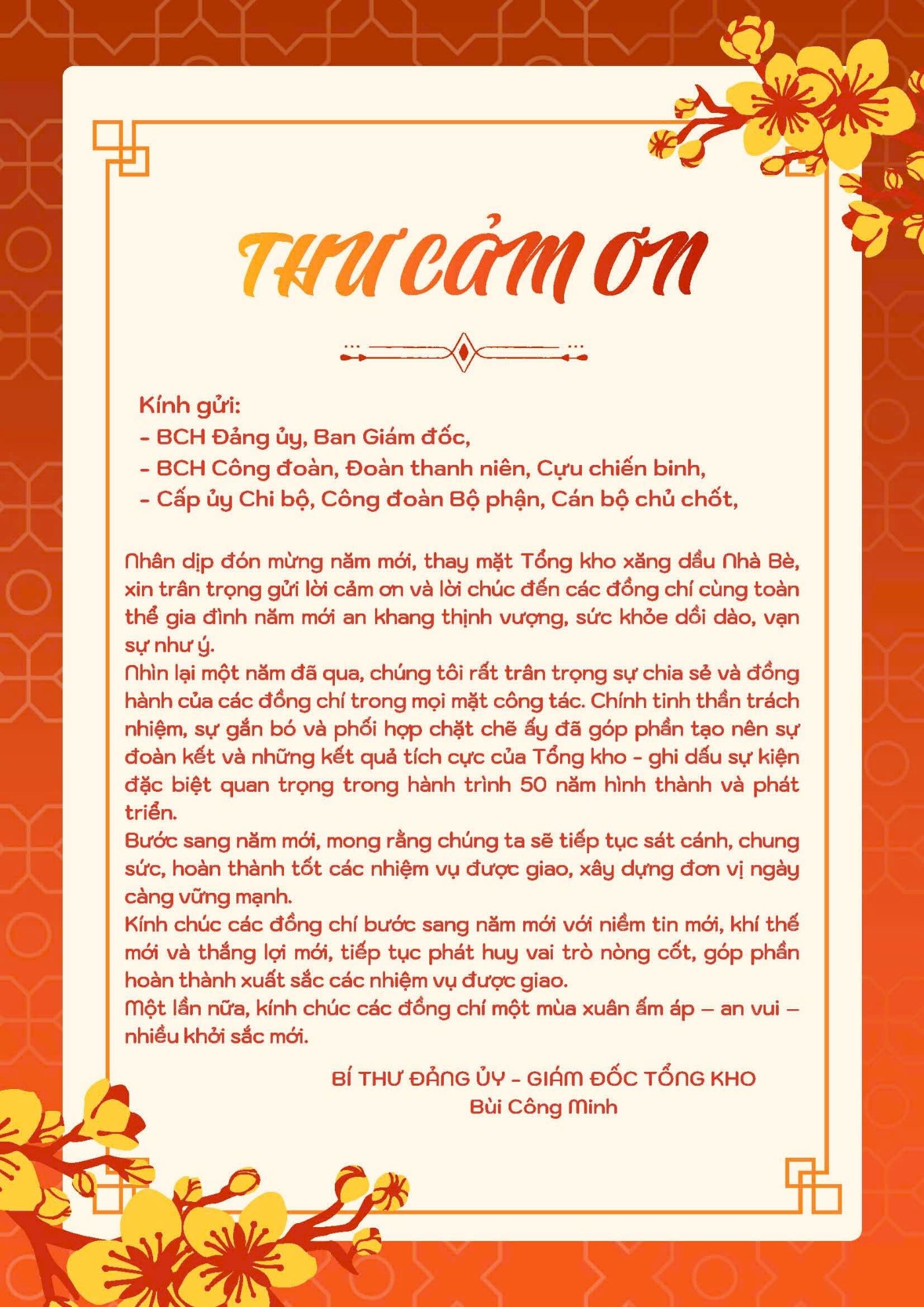 On the occasion of the Lunar New Year, the entire staff of Nha Be Petroleum Terminal extends best wishes for Prosperity – Good Health – Success to all Petrolimex employees, partners, and customers. May our cooperation remain strong and sustainable in the years ahead.