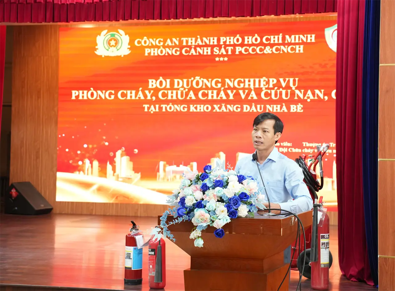 Từ ngày 20/11 đến ngày 10/12/2025, Tổng kho Xăng dầu Nhà Bè (TKNB) trực thuộc Công ty TNHH MTV Petrolimex Sài Gòn phối hợp cùng Đội Chữa cháy & Cứu nạn cứu hộ (CNCH) - Khu vực 21 thuộc Phòng Cảnh sát PCCC & CNCH Công an TP. Hồ Chí Minh (Đội CC & CNCH - KV21), tổ chức chương trình bồi dưỡng nghiệp vụ PCCC năm 2025 cho toàn thể cán bộ công nhân viên đang làm việc tại Tổng kho.
