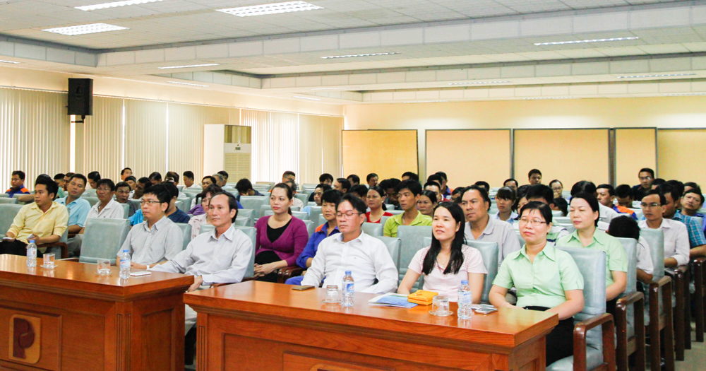 Giảng viên Huỳnh Kim Tuấn trình bày bài giảng về Đánh giá mối nguy và biện pháp kiểm soát trong lao động sản xuất