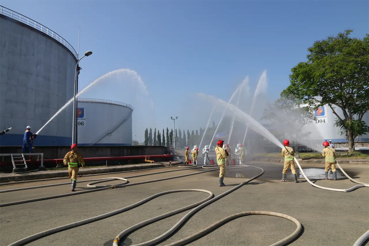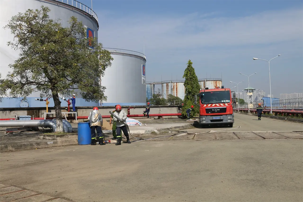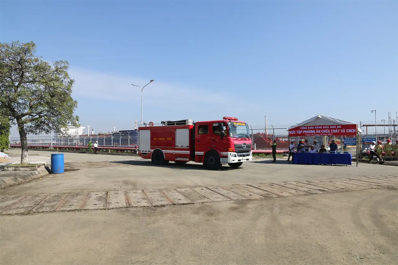 Xác định công tác phòng cháy, chữa cháy và cứu nạn, cứu hộ (PCCC-CNCH) là nhiệm vụ trọng tâm, xuyên suốt trong quản trị an toàn và bảo đảm hoạt động sản xuất kinh doanh ổn định, bền vững. Ngày 19/12/2025, Tổng kho Xăng dầu Nhà Bè (TKNB) trực thuộc Công ty TNHH MTV Petrolimex Sài Gòn đã phối hợp với Đội Chữa cháy và CNCH Khu vực 21 (Phòng Cảnh sát PCCC & CNCH - Công an TP. Hồ Chí Minh) tổ chức thực tập phương án PCCC-CNCH năm 2025 tại Trạm bơm xăng dầu kho D.