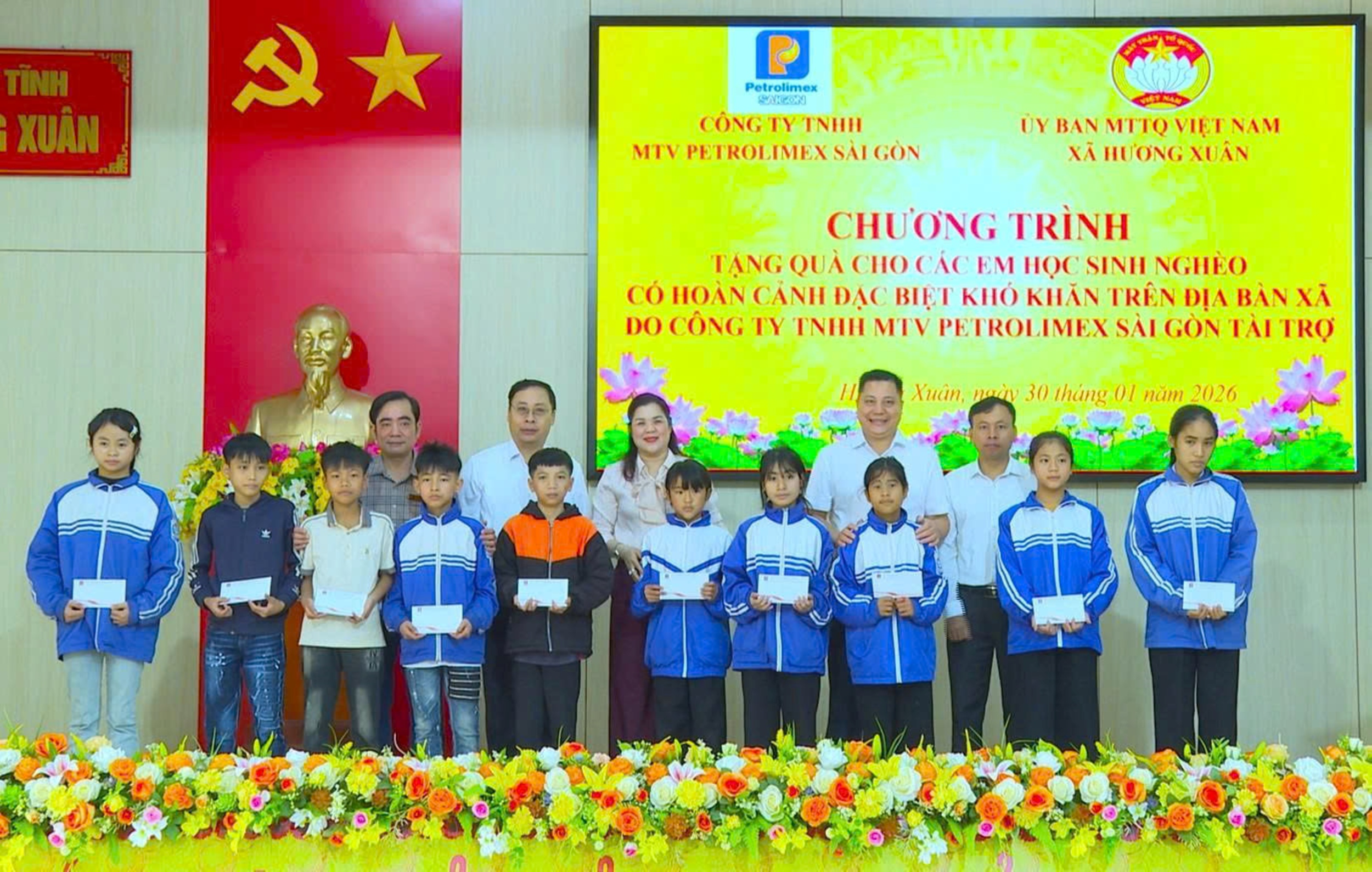 * Ngày 30/1/2026, đại diện Petrolimex Sài Gòn đã trao 160 triệu đồng tới Ủy ban MTTQ Việt Nam xã Hương Xuân (Hà Tĩnh) để hỗ trợ mua trang thiết bị cho trường học và trao 120 suất học bổng tới các học sinh có hoàn cảnh khó khăn trên địa bàn xã.