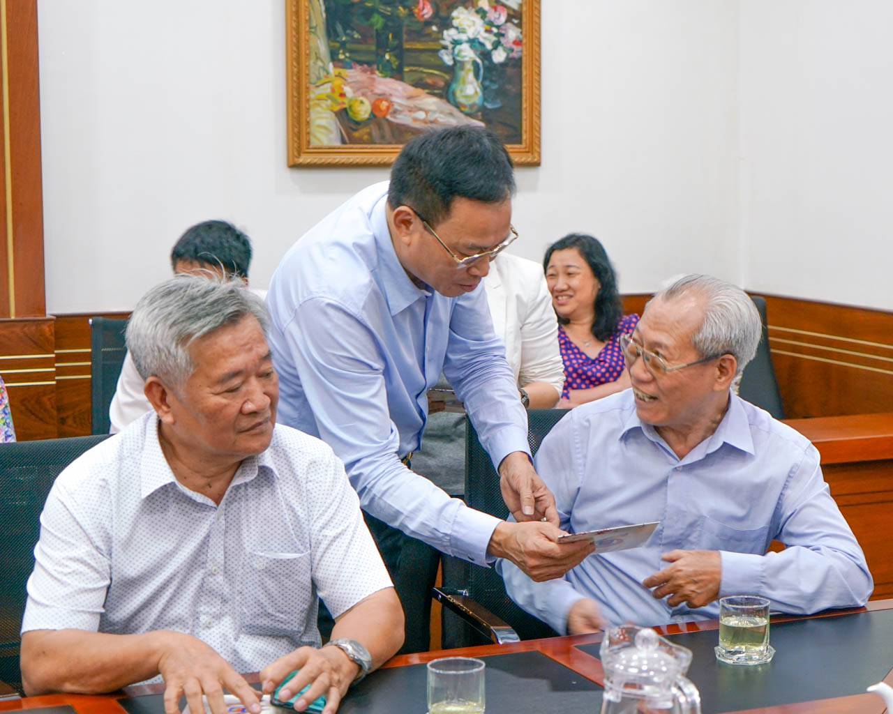 Dự buổi gặp mặt có Phó bí thư Thường trực, Phụ trách Đảng ủy Khối DNTMTW tại TP. HCM Nguyễn Văn Quang, Phó bí thư Đảng ủy Khối DNTMTW tại TP. HCM - Bí thư Đảng ủy Petrolimex Sài Gòn - Giám đốc Trịnh Bá Bộ; Chủ tịch Petrolimex Sài Gòn Nguyễn Văn Cảnh, Ban thường vụ Đảng bộ, Văn phòng Đảng - Đoàn thể cùng 17 cán bộ hưu trí nguyên là cán bộ lãnh đạo của Đảng ủy Khối, các cán bộ đã từng công tác tại Đảng bộ Khối, Công đoàn Khối qua các thời kỳ.