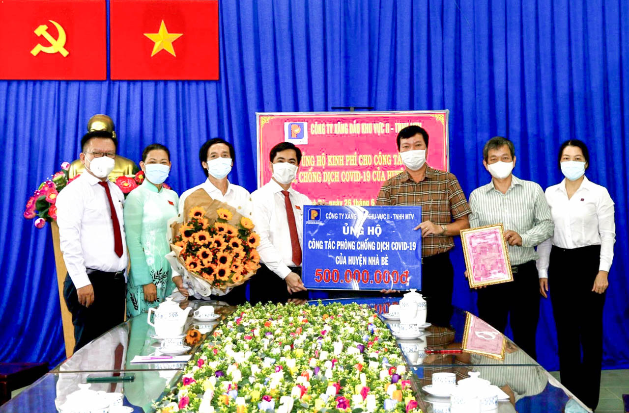 Ngày 26.6.2021, Lãnh đạo Công ty Xăng dầu Khu vực II (Petrolimex Sài Gòn) đã đến trao tặng 500 triệu đồng hỗ trợ công tác phòng, chống dịch Covid-19 tại huyện Nhà Bè, TP.HCM.