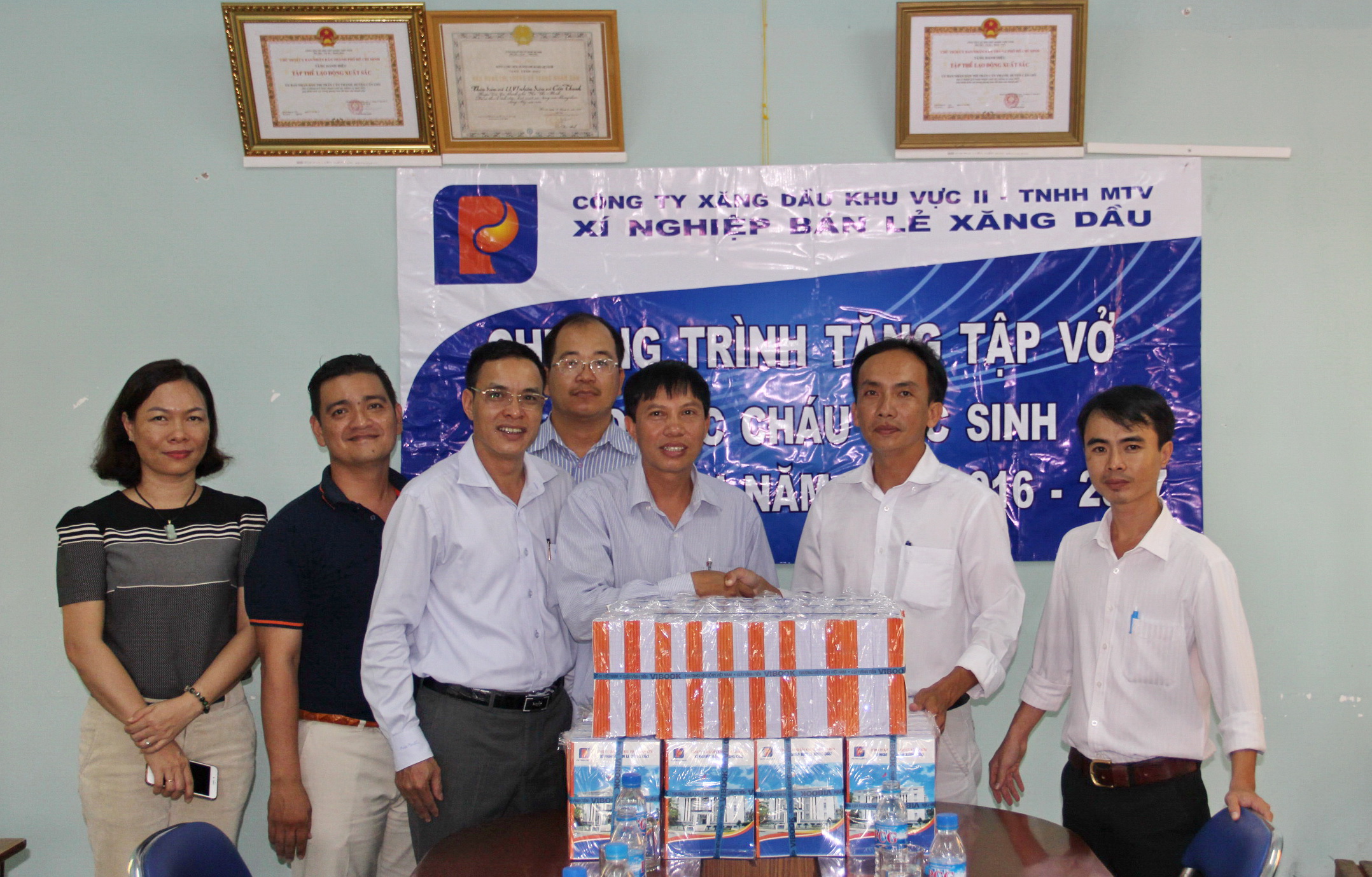 Chuẩn bị bước vào năm học 2016 - 2017, Xí nghiệp Bán lẻ Xăng dầu (XNBL/Xí nghiệp) - Công ty Xăng dầu Khu vực II (Petrolimex Sài Gòn) tổ chức trao 8.000 quyển tập (vở viết 100 trang) tặng những học sinh có hoàn cảnh khó khăn thuộc các xãtrên địa bàn huyện Củ Chi, Hóc Môn và Cần Giờ TP. Hồ Chí Minh, nơi có sự hiện diện các Cửa hàng xăng dầu (CHXD) trực thuộc Xí nghiệp.
