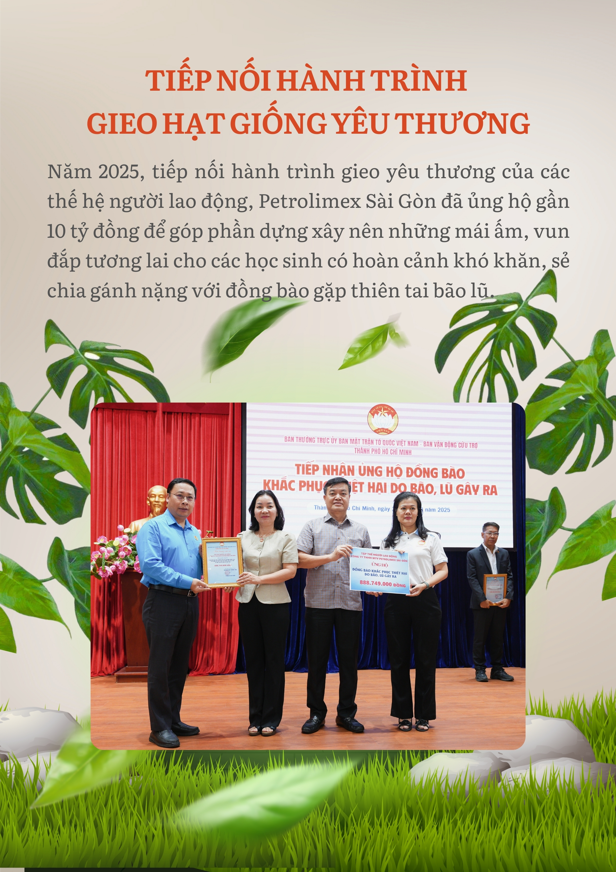 Năm 2025, tiếp nối hành trình gieo yêu thương, Petrolimex Sài Gòn đã thực thi trách nhiệm xã hội với nhiều hoạt động nhân văn, góp phần lan tỏa những hạt mầm nhân ái, để thế giới ngày một tươi đẹp hơn!