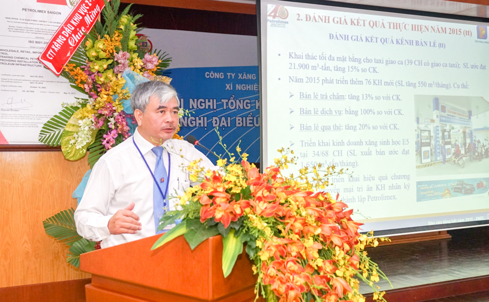 Phát biểu chỉ đạo hội nghị, Chủ tịch kiêm Giám đốc Petrolimex Sài Gòn Trần Văn Thắng ghi nhận và biểu dương những thành tích mà CBCNV - Người lao động Xí nghiệp đã đoàn kết, nỗ lực phấn đấu đạt được trong năm qua. Đặc biệt, năm 2015 Xí nghiệp đã hoàn thành xuất sắc nhiệm vụ được giao trên tất cả các mặt như: đảm bảo an toàn, sản lượng bán lẻ tăng trưởng, lợi nhuận kinh doanh xăng dầu đạt cao nhất từ trước đến nay (chiếm hơn 60 % tổng lợi nhuận toàn Công ty), hoàn thành việc sửa chữa nhiều cửa hàng và kinh doanh khác có sự phát triển đột phá theo chiều hướng ổn định lâu dài, đảm bảo việc làm và cải thiện đời sống cho Người lao động. Những kết quả đạt được của Xí nghiệp đã góp phần hết sức quan trọng vào việc hoàn thành nhiệm vụ chung của toàn Công ty. Đồng thời yêu cầu XNBL trong điều hành phải thay đổi lớn về tư duy, đổi mới công tácchỉ đạo để tạo ra dấu ấn mạnh mẽ và tổ chức thực hiện quyết liệt, đồng bộ; chú trọng công tác an toàn, mặc dù đã rất nỗ lực nhưng vẫn còn có những nguy cơ tiềm ẩn không được chủ quan thỏa mãn.