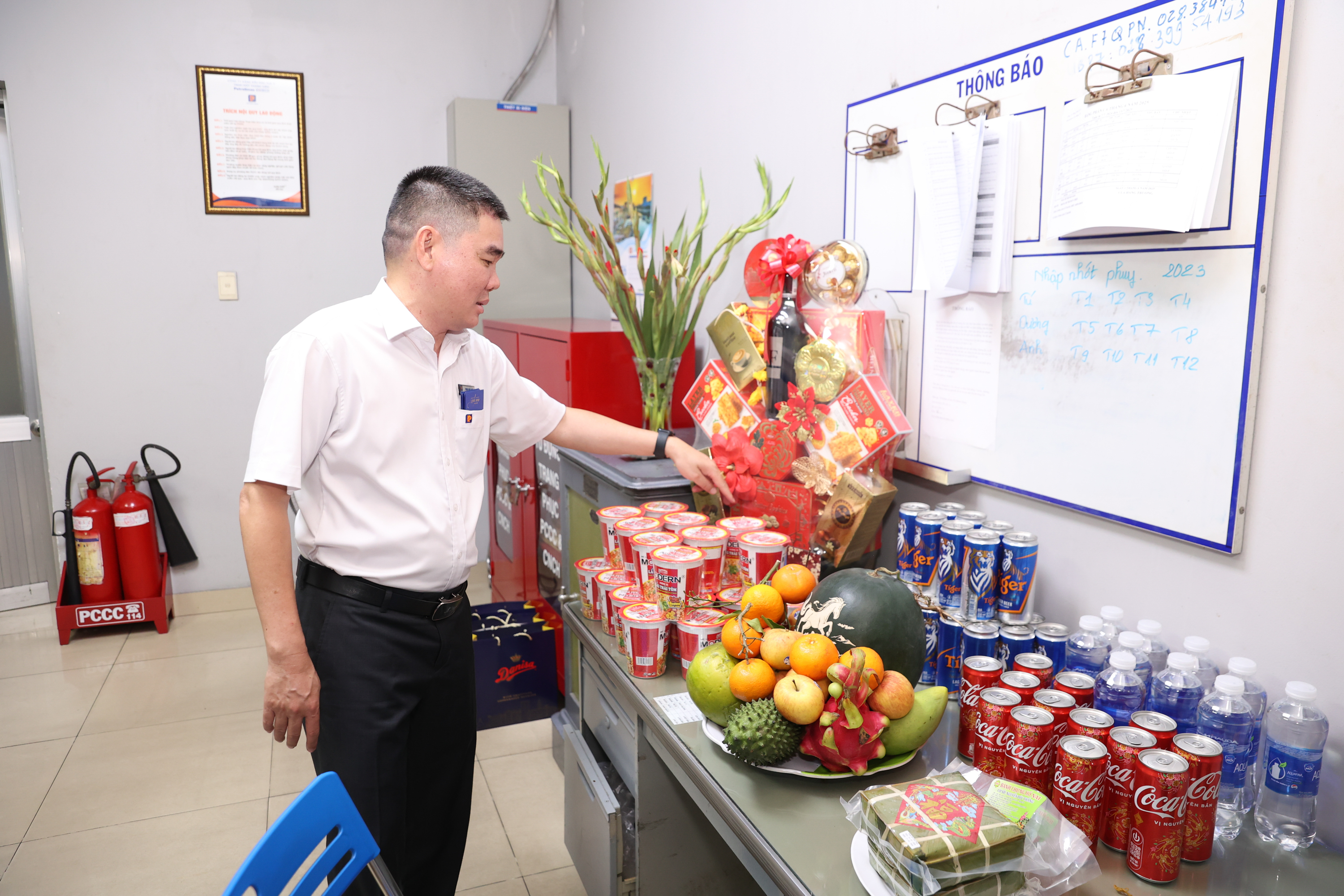Bên cạnh hoạt động chúc Tết, Đoàn công tác cũng kết hợp kiểm tra, đánh giá công tác tổ chức bán hàng và công tác chuẩn bị phục vụ Tết tại các Cửa hàng xăng dầu. Nội dung kiểm tra tập trung vào việc đảm bảo an toàn phòng cháy chữa cháy, an toàn lao động, chuẩn bị đầy đủ nguồn hàng, quản lý tiền hàng cũng như công tác chăm lo đời sống cho Người lao động trong dịp Tết. Qua ghi nhận thực tế, các đơn vị đều có sự chuẩn bị chu đáo, đảm bảo hoạt động kinh doanh thông suốt và an toàn.
