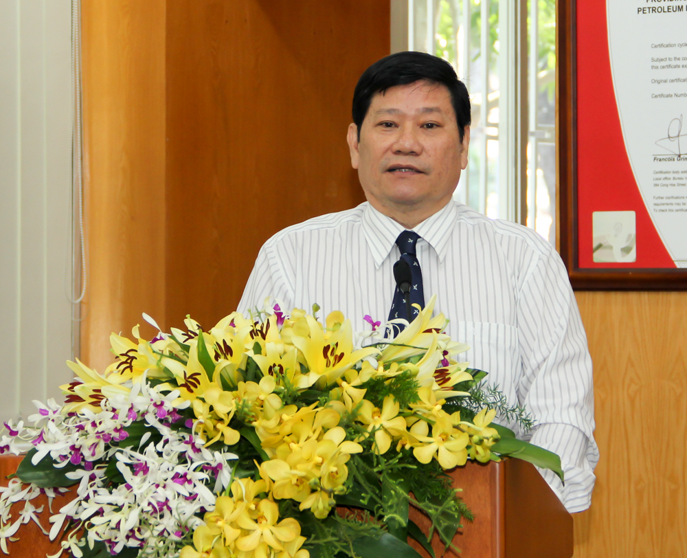 | Giám đốc Xí nghiệp Bản lẻ Xăng dầu Dương Văn Phi trình bày tham luận | Giám đốc Tổng kho Xăng dầu Nhà Bè Nguyễn Danh Hùng trình bày tham luận |