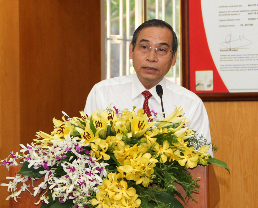 | Phó giám đốc Đặng Duy Quân trình bày báo cáo Tổng kết năm 2014 và phương hướng nhiệm vụ năm 2015 | Phó giám đốc, Chủ tịch Công đoàn Trịnh Bá Bộ trình bày văn kiện Hội nghị người lao động |