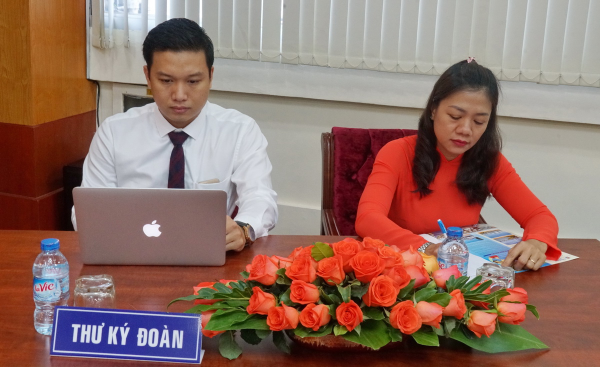 Thư ký đoàn (đại biểu Nguyễn Thanh Tâm - Ban ERP và đại biểu Hoàng Thị Minh Hiền - Phòng Công nghệ Thông tin)