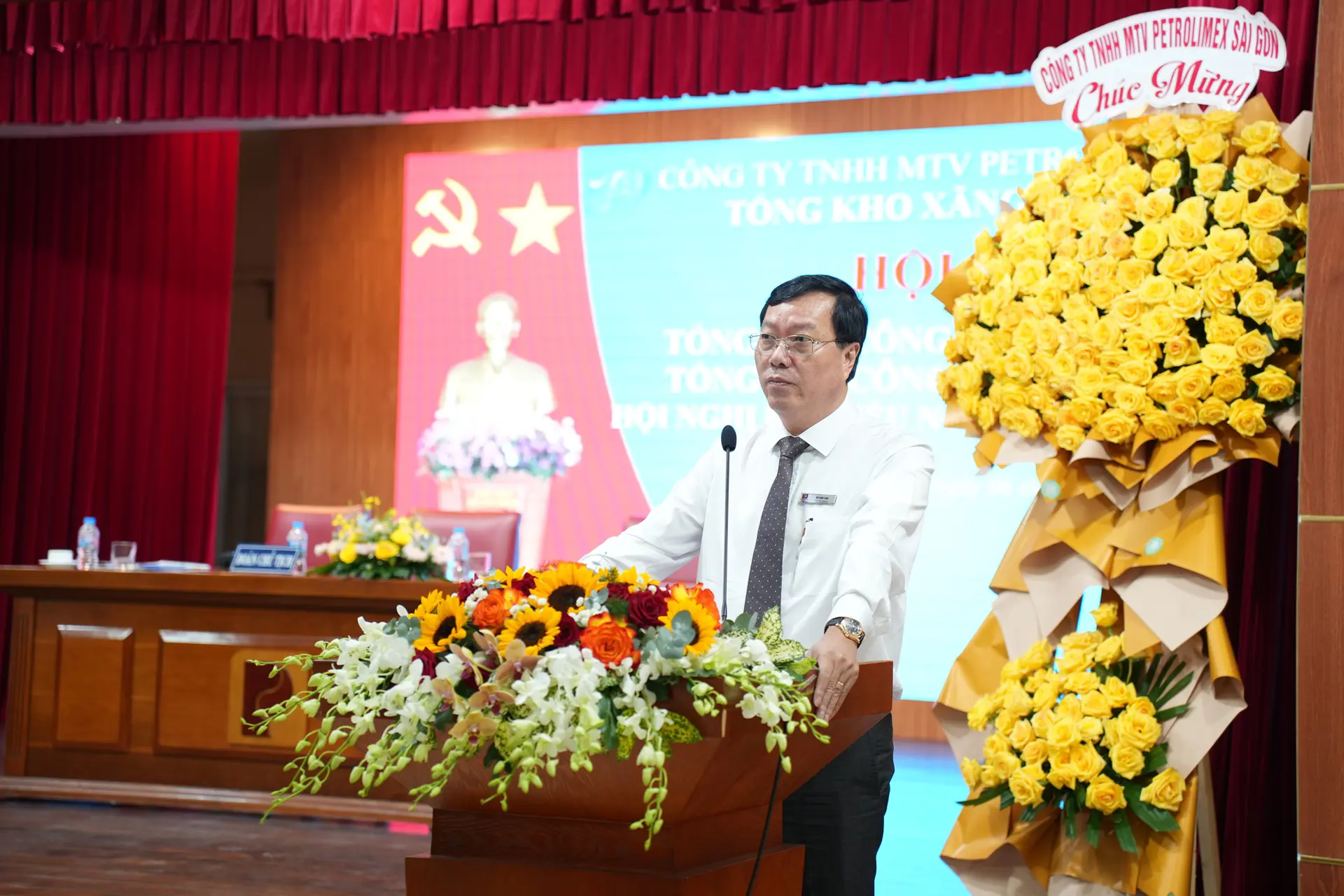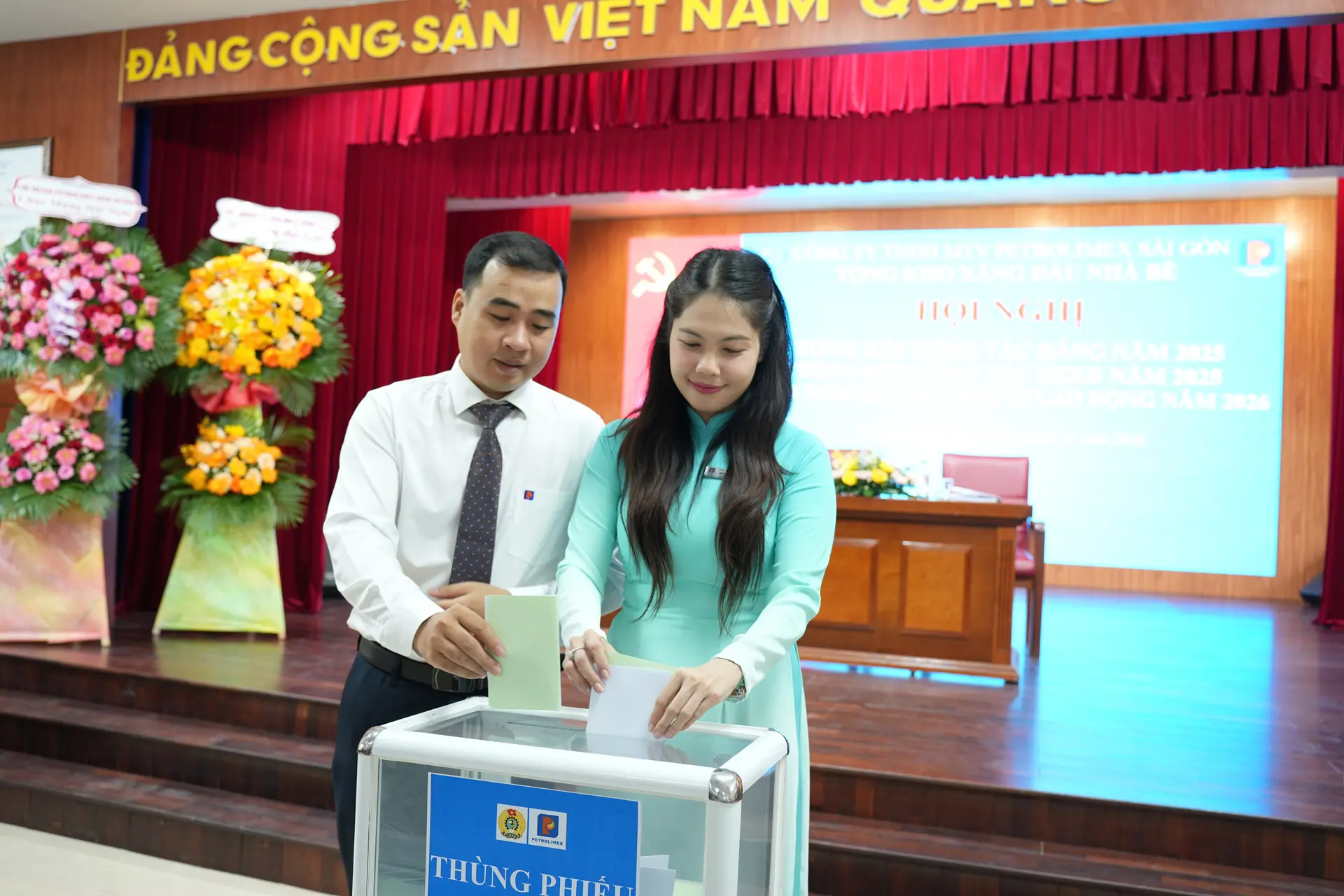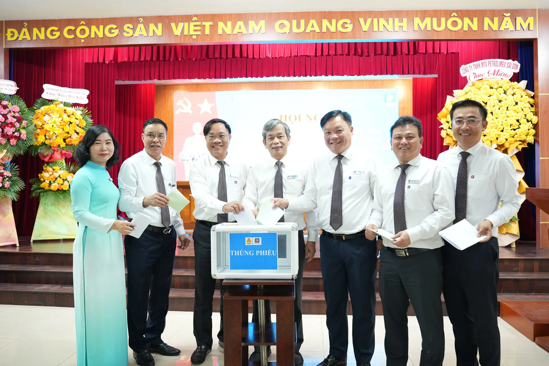 Dự và chỉ đạo Hội nghị có Bí thư Đảng ủy - Chủ tịch Petrolimex Sài Gòn Võ Văn Tân, Phó Bí thư Đảng ủy - Giám đốc Petrolimex Sài Gòn Phạm Anh Tuấn, Phó giám đốc - Chủ tịch Công đoàn Petrolimex Sài Gòn Trần Đình Tuyết cùng đại diện Ban giám đốc, lãnh đạo các Phòng/Ban/Trung tâm và lãnh đạo Chinh nhánh Petrolimex Vũng Tàu, Chi nhánh Petrolimex Bình Dương trực thuộc Công ty.