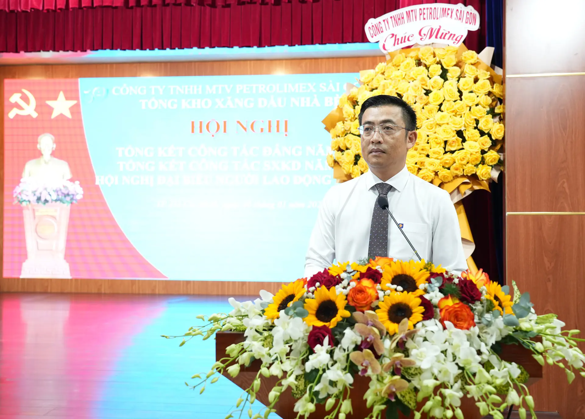 Phát biểu chỉ đạo Hội nghị tổng kết công tác Đảng và Hội nghị Người lao động, Bí thư Đảng ủy - Chủ tịch Petrolimex Sài Gòn Võ Văn Tân ghi nhận, biểu dương những kết quả nổi bật, tích cực mà toàn thể cán bộ, đảng viên và người lao động Tổng kho Xăng dầu Nhà Bè đã nỗ lực đạt được trong năm qua, đặc biệt là thành tích đạt sản lượng xuất qua kho cao nhất lịch sử trong điều kiện nhiều thay đổi, khó dự báo.