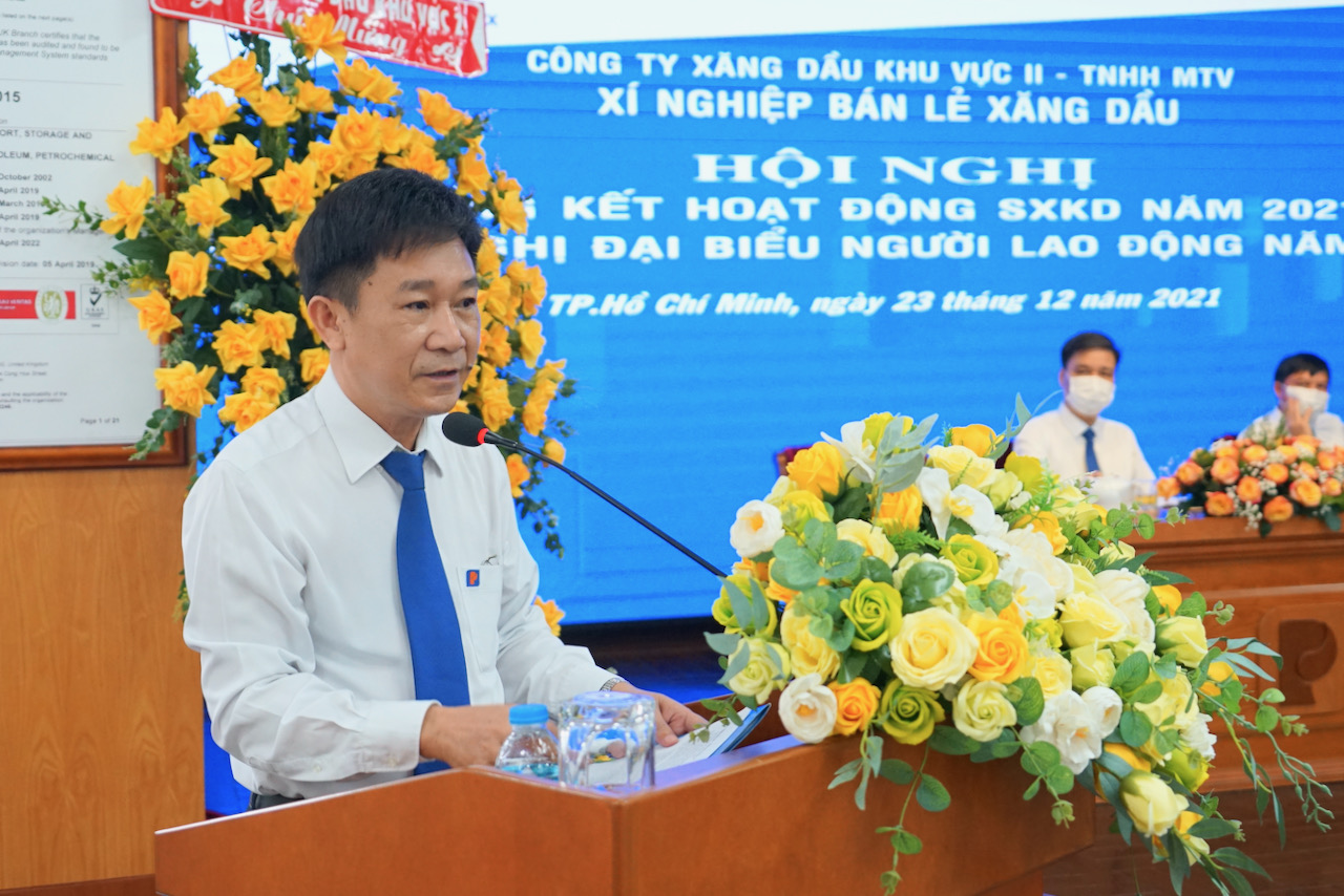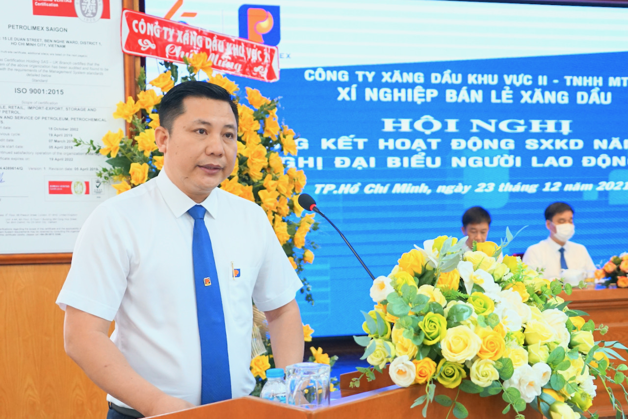 Thay mặt Ban lãnh đạo Công ty, Giám đốc Petrolimex Sài GònVõ Văn Tânghi nhận, đánh giá cao những kết quả đạt được của CBCNV-NLĐ Xí nghiệp trong năm 2021. Đồng thời yêu cầu năm 2022, Xí nghiệp tập trung thực hiện một số các nhiệm vụ trọng tâm sau: